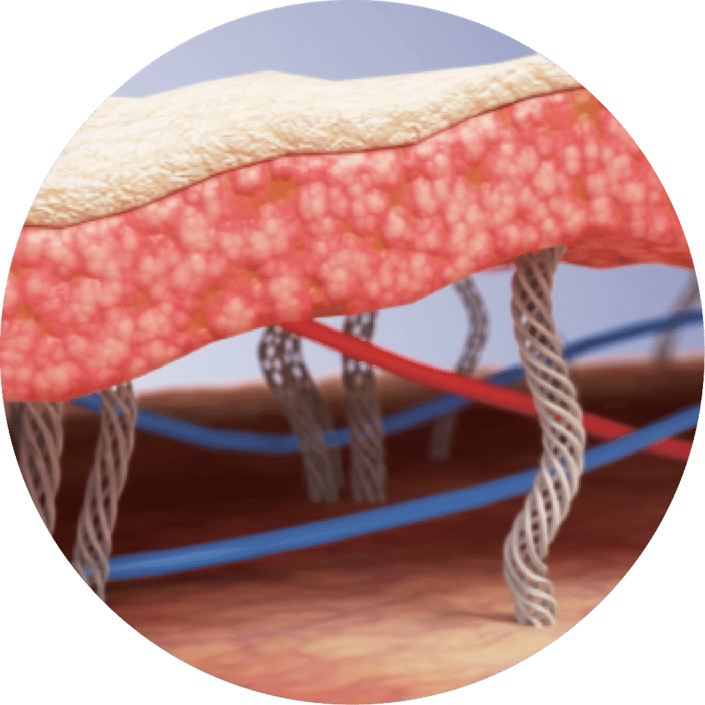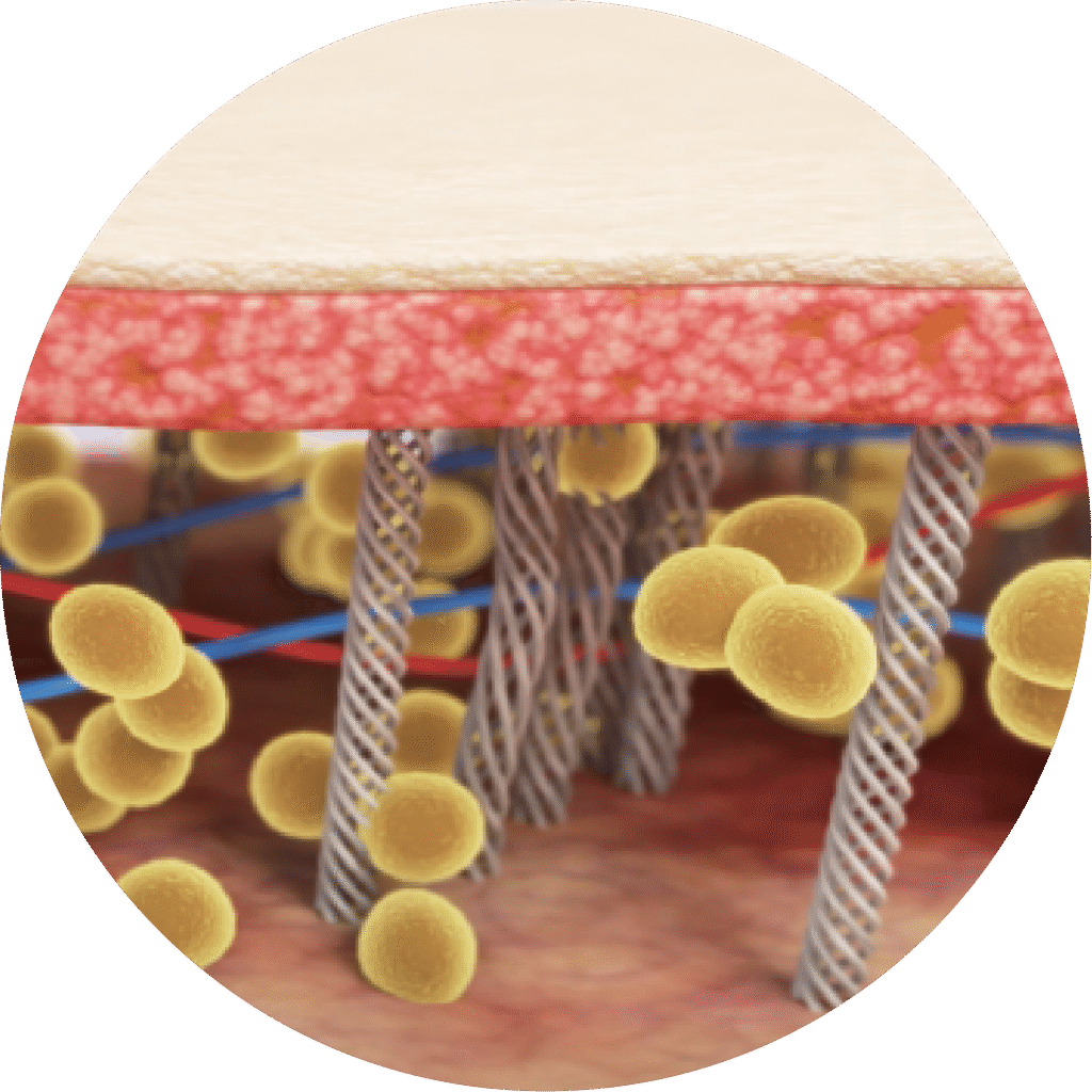 Immediate volume & lift, formation of new collagen inside & outside of thread
