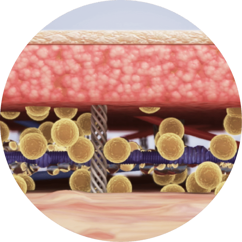 - It forms a collagen network that keeps the inner and outer skin tightened and lifted.