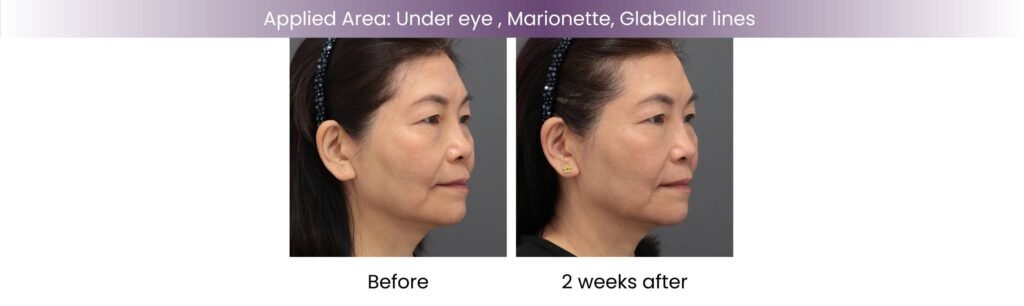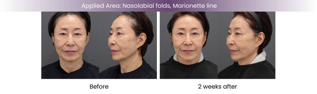 - Improves deep folds, such as Nasolabial fold, Marionette, Indian folds